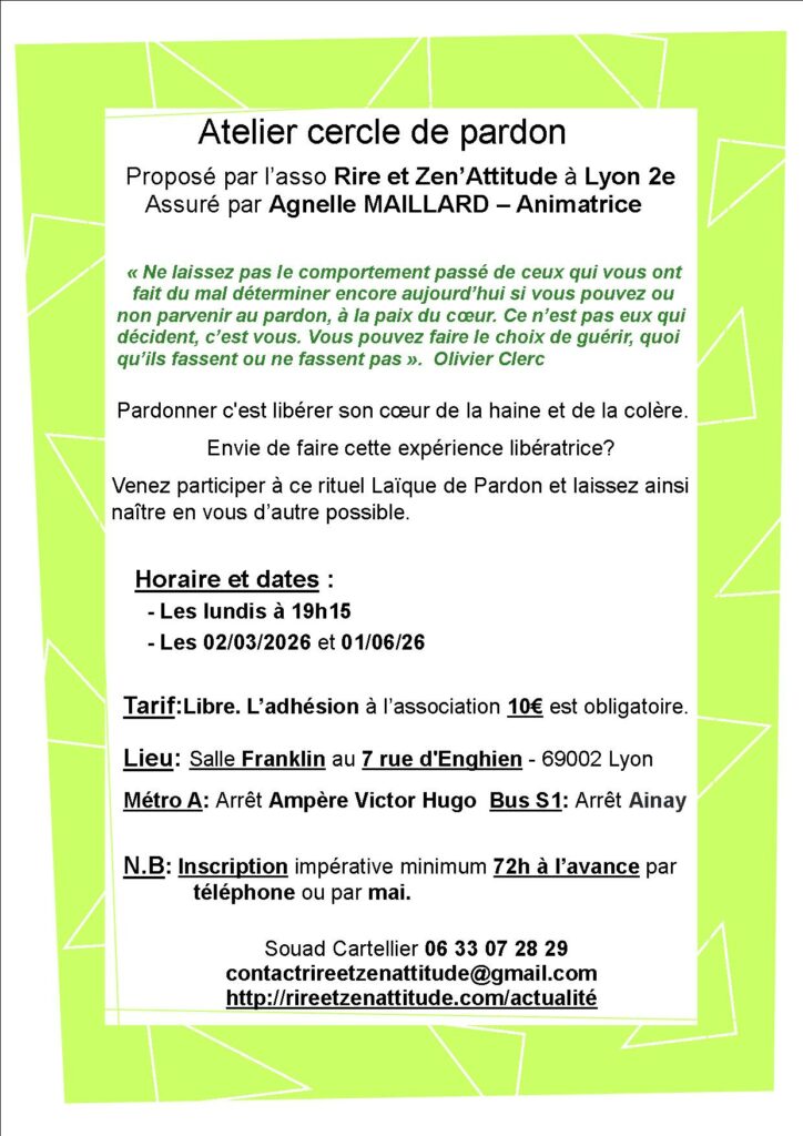 Rituel transpersonnel, aussi simple que puissamment thérapeutique, les Cercles de Pardon…permettent de faire œuvre de pardon, vis-à-vis des autres et de soi-même, y compris avec des personnes non présentes, voire défuntes. Il permet à notre cœur de guérir et de se libérer des couches de rancune, de tristesse ou de haine qui l’empêchent d’aimer pleinement.