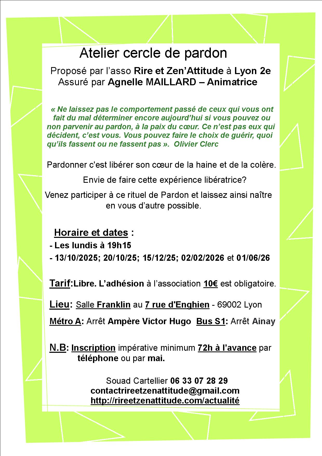 N.B: Les bulletins ci-dessus sont à imprimer et à renvoyer avec votre règlement à: Rire et Zen’Attitude, 8 rue Denuzière – 69002 Lyon, France                                          [/vc_column_text][vc_toggle title= »Conditions d’inscription » style= »square » color= »orange »]